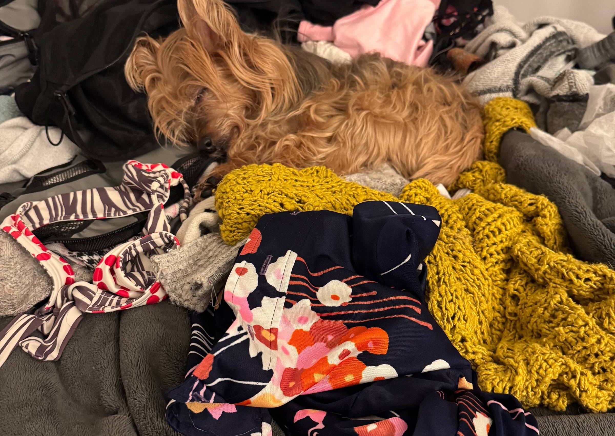 Indie supervising the unpacking situation. Zero help. 10/10. 🐶